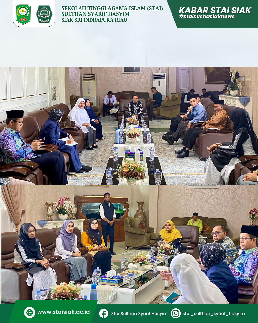 Audiensi ini dihadiri langsung oleh Ketua Sekolah Tinggi Agama Islam (STAI) Sulthan Syarif Hasyim (SUSHA) Siak Sri Indrapura Riau, Dr. Muhammad Hatta M.Pd, didampingi sejumlah dosen dan tenaga kependidikan (tendik). Meskipun dialog tersebut berlangsung relatif singkat, kurang lebih selama 15 menit, substansi yang disampaikan oleh perwakilan kampus STAI Sulthan Syarif Hasyim Siak Sri Indrapura Riau.