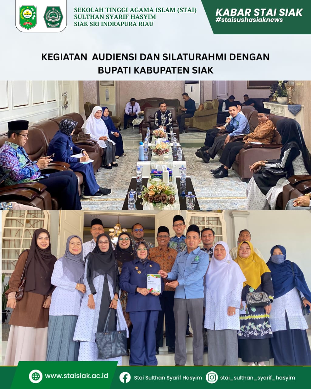 Siak Sri Indrapura, 20 Desember 2025, Sekolah Tinggi Agama Islam (STAI) Sulthan Syarif Hasyim (SUSHA) Siak Sri Indrapura, Riau, melaksanakan kegiatan audiensi dan silaturahmi dengan Dr. Afni Z, S.A.P., M.Si, Bupati Siak pada Sabtu, bertempat di Rumah Bupati yang dikenal sebagai Rumah Rakyat. Pertemuan yang dimulai pukul 10.00 WIB ini menjadi forum penting bagi pihak kampus untuk menyampaikan aspirasi, keluhan, dan harapan langsung kepada pimpinan daerah.