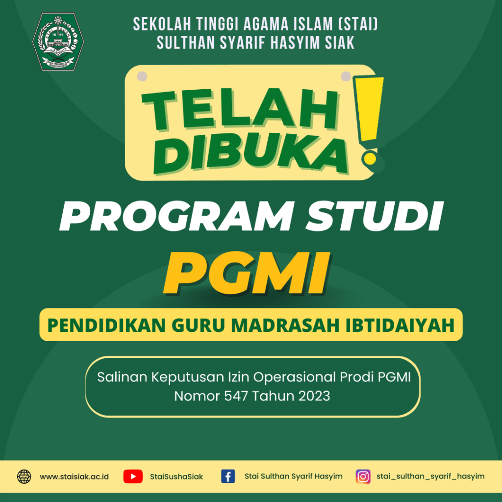 Pimpinan dan Civitas Akademika STAI Sulthan Syarif Hasyim Siak, mengucapkan Tahniah wa Innalillah kepada 10 Mahasiswa STAI Sulthan Syarif Hasyim Siak sebagai Penerima Beasiswa Sobat Bumi, Pertamina Foundation tahun 2023. Semoga menjadi motivasi dalam belajar dan lebih meningkatkan mutu dalam pendidikan serta meraih gelar sarjana. Terima kasih juga kepada semua yang telah mendaftar beasiswa. Teruslah […]