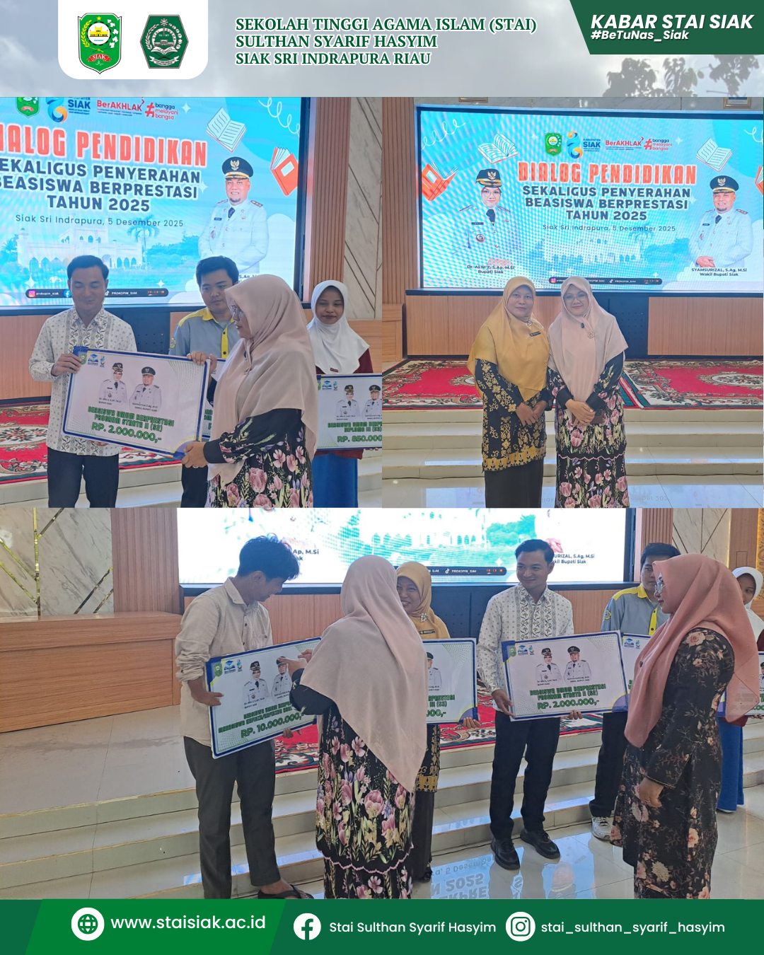 Siak Sri Indrapura, 6 Desember 2025 – Sekolah Tinggi Agama Islam (STAI) Sulthan Syarif Hasyim Siak Sri Indrapura Riau kembali menorehkan tinta emas sejarah institusi. Sebanyak puluhan perwakilan terbaik dari Dosen, Tenaga Kependidikan (Tendik), dan mahasiswa STAI Susysia menerima Beasiswa Pendidikan Anak Nagari Siak (BETUNAS) Tahun 2025 yang diserahkan langsung oleh Pemerintah Kabupaten Siak. Prestasi ini menegaskan kualitas SDM institusi yang diakui sebagai bagian integral dari pembangunan daerah.