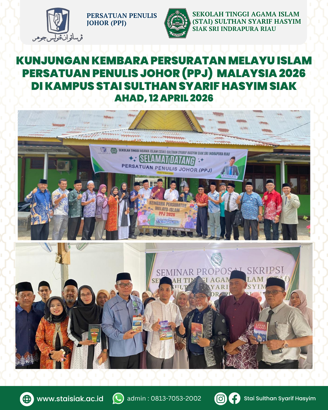 Sekolah Tinggi Agama Islam Sulthan Syarif Hasyim Siak Sri Indrapura Riau (STAI SUSHA) mengadakan acara pelantikan Dewan Mahasiswa (DEMA) dan Himpunan Mahasiswa (HIMA) pada hari Ahad (19/11/2023). Pelantikan kepengurusan Dewan Eksekutif Mahasiswa (DEMA) & Himpunan Mahasiswa (HIMA) dipimpin langsung oleh Ketua STAI Sulthan Syarif Hasyim Siak Dr. Iwan Agus Supriono, M.Pd.